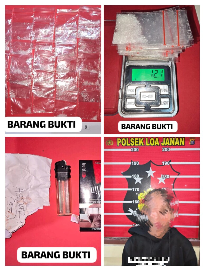 Onlineku.Info, Kutai Kartanegara – Unit Reskrim Polsek Loa Janan kembali berhasil mengungkap kasus penyalahgunaan narkotika jenis sabu-sabu. Seorang pria berinisial AP (37), residivis kasus narkotika, diringkus saat menyimpan 48 poket sabu dengan total berat 12,1 gram brutto di Jalan Taruna RT 12, Desa Loa Duri Ilir, Kecamatan Loa Janan, Kabupaten Kutai Kartanegara, pada Sabtu (6/9/2025) malam sekitar pukul 19.00 Wita.