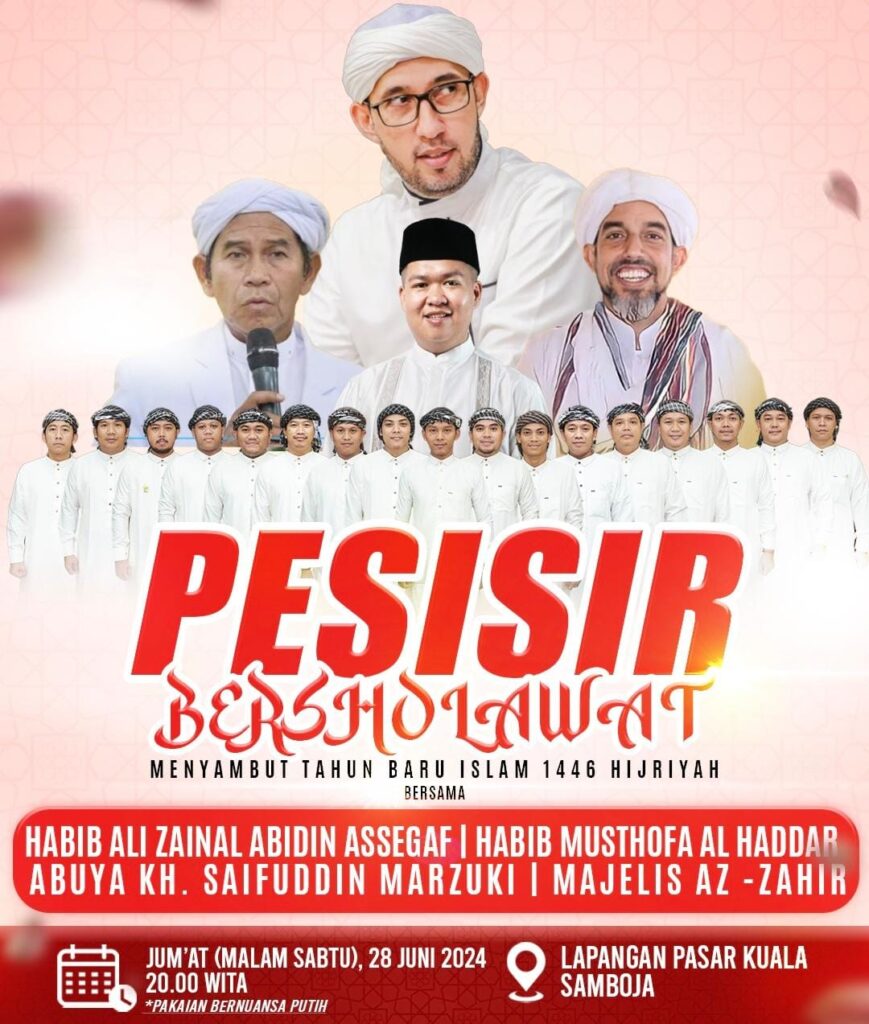 “Pesisir Bersholawat” digelar pada Jumat (28 Juni 2024) di Lapangan Pasar Kuala Samboja, Pukul 20.00 WITA.